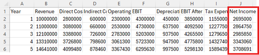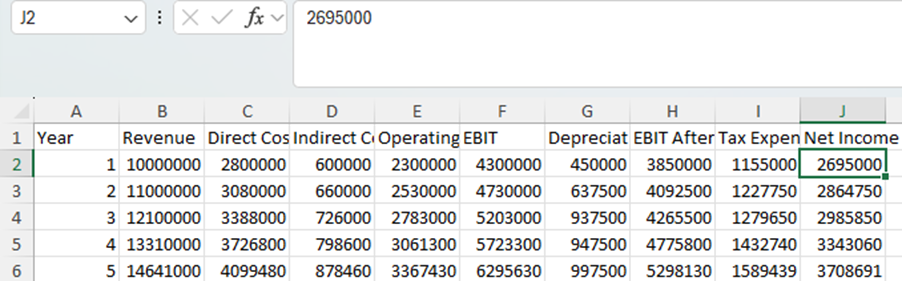 However, Copilot wasnโt quite as accurate. It calculated the figures correctly until Depreciation, which then created knock-on effects in the EBIT and Net Income totals together with the dependent Taxes calculation.