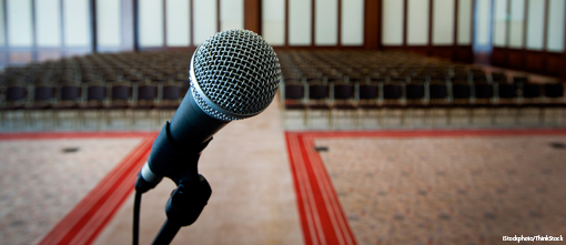 3. Less is more. Many novice presenters try to cover dozens of points. Don’t. Audience members will only take a few points away, so you need to trim your presentation down to two or three important ideas. Try to tell stories and don’t be afraid to use a little theatre. Walking around the stage is fine, as is standing still, but whichever you do, your body language should be relaxed and the event should feel intimate, even if it’s big. Individuals should feel as if you’re addressing them individually, not as a vast, monolithic crowd.